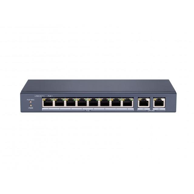 8-портовый PoE коммутатор с функцией облачного управления, Порты: 8 RJ45 10 / 100Мбит / с (PoE / PoE+ / Hi-PoE), 2 RJ45 10 / 100 / 1000Мбит / с (uplink); мощность PoE: порт 1 до 60 Вт, порты 2-8 до 30Вт, суммарно до 60Вт; PoE watchdog, передача до 250м; питание: 57В(DC