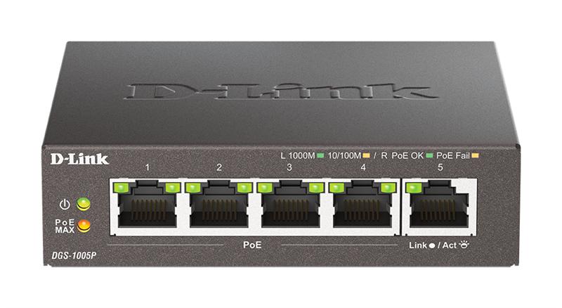 коммутатор D-Link Неуправляемый PoE-коммутатор, 5x1000Base-T (4x1000Base-T PoE), PoE-бюджет 60 Вт, корпус металл