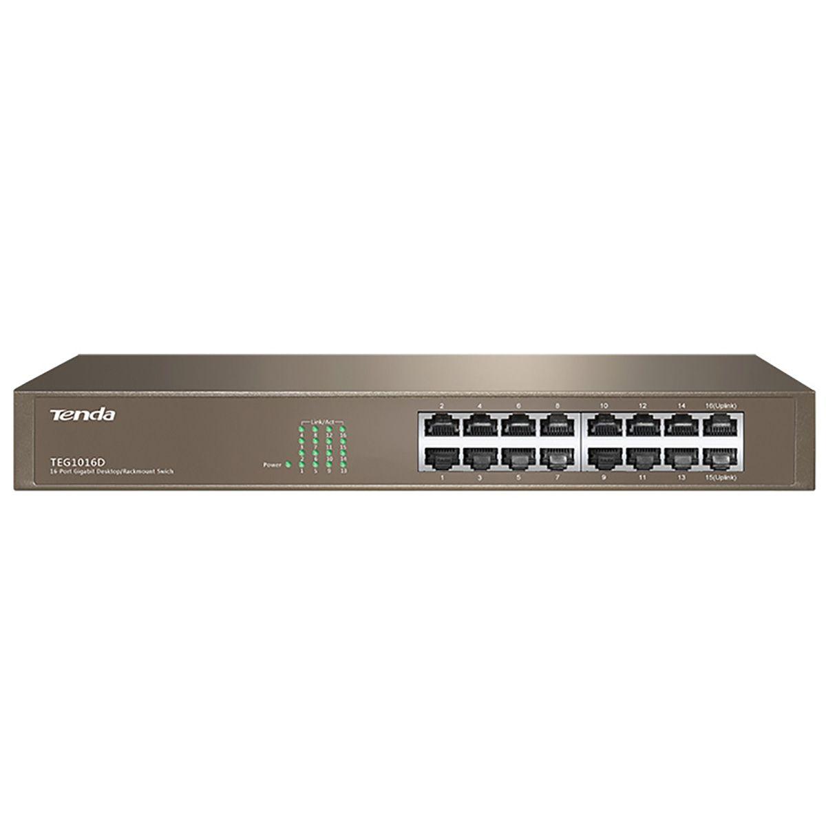 Коммутатор Tenda TEG1016D Коммутатор неуправляемый, 16 портов 16x1 Гбит / с, настольный, металлический корпус