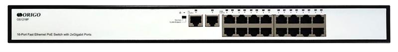 Коммутатор ORIGO Неуправляемый PoE-коммутатор, 16x100Base-TX PoE, 2x1000Base-T, PoE-бюджет 190 Вт, PoE до 250 м, комплект для установки в 19" стойку