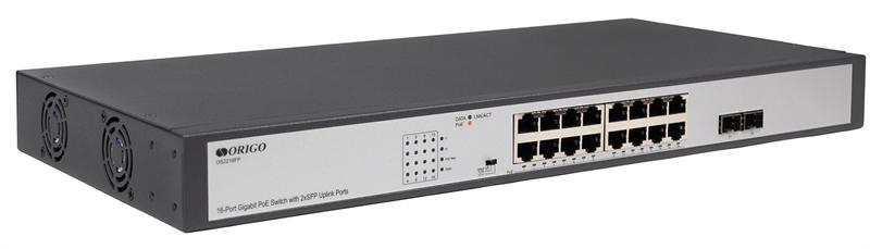 Коммутатор ORIGO Неуправляемый PoE-коммутатор, 16x1000Base-T PoE, 2x1000Base-X SFP, PoE-бюджет 250 Вт, PoE до 250 м, комплект для установки в 19" стойку