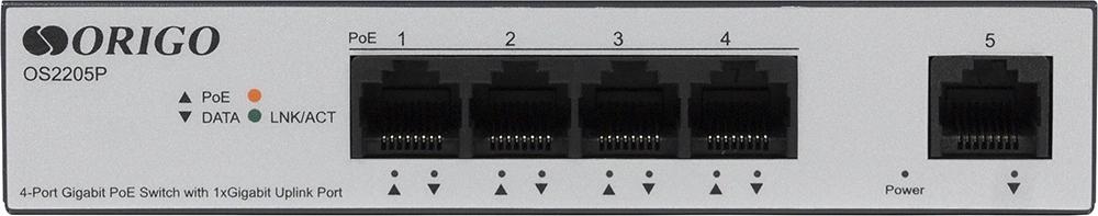 Коммутатор ORIGO OS2205P / 60W / A1A Неуправляемый PoE-коммутатор 4x1000Base-T PoE+, 1x1000Base-T, PoE-бюджет 60 Вт