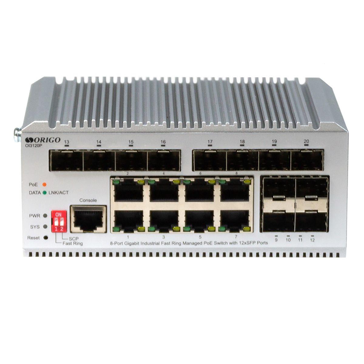 Коммутатор ORIGO OI3120P / 185W / A1A Промышленный управляемый L2 PoE-коммутатор 8x1000Base-T PoE+, 12x1000Base-X SFP, PoE-бюджет 185 Вт