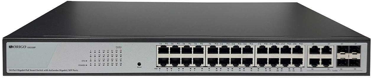 Коммутатор Origo OS2328P / 360W OS2328P / 360W / A1A (L2) 24x1Гбит / с 4xКомбо(1000BASE-T / SFP) 24PoE 360W настраиваемый