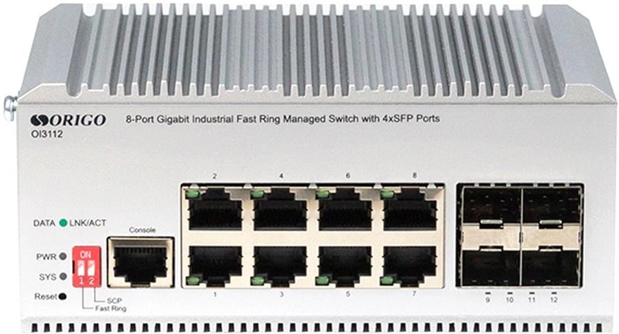 Коммутатор ORIGO OI3112P / 185W / A1A 12-портовый гигабитный промышленный управляемый L2-коммутатор с 8 портами PoE+ и 4 комбо-портами