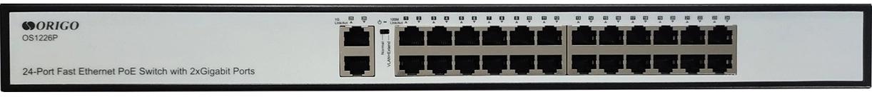 Коммутатор ORIGO OS1226P / 285W / A1A Неуправляемый PoE-коммутатор, 24x100Base-TX, 2x1000Base-T, PoE до 250м OS1226P / 285W / A1A Неуправляемый PoE-коммутатор, 24x100Base-TX, 2x1000Base-T, PoE до 250м