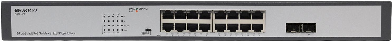 Коммутатор Origo OS2218FP / 200W OS2218FP / 200W / A1A (L2) 16x1Гбит / с 2SFP 16PoE+ 250W неуправляемый