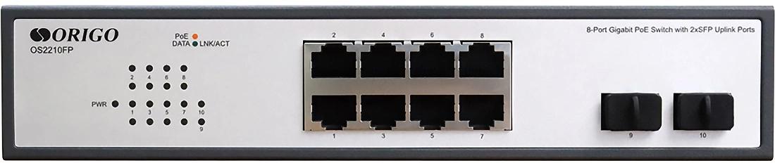 Коммутатор ORIGO OS2210FP / 120W / A1A Неуправляемый PoE-коммутатор 8x1000Base-T PoE+, 2x1000Base-X SFP, PoE-бюджет 120 Вт