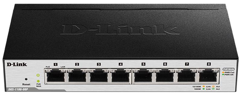 D-Link DGS-1100-08PLV2 / A1A Настраиваемый L2 коммутатор с 8 портами 10 / 100 / 1000Base-T (4 порта PoE 802.3af / at, PoE-бюджет 80 Вт)