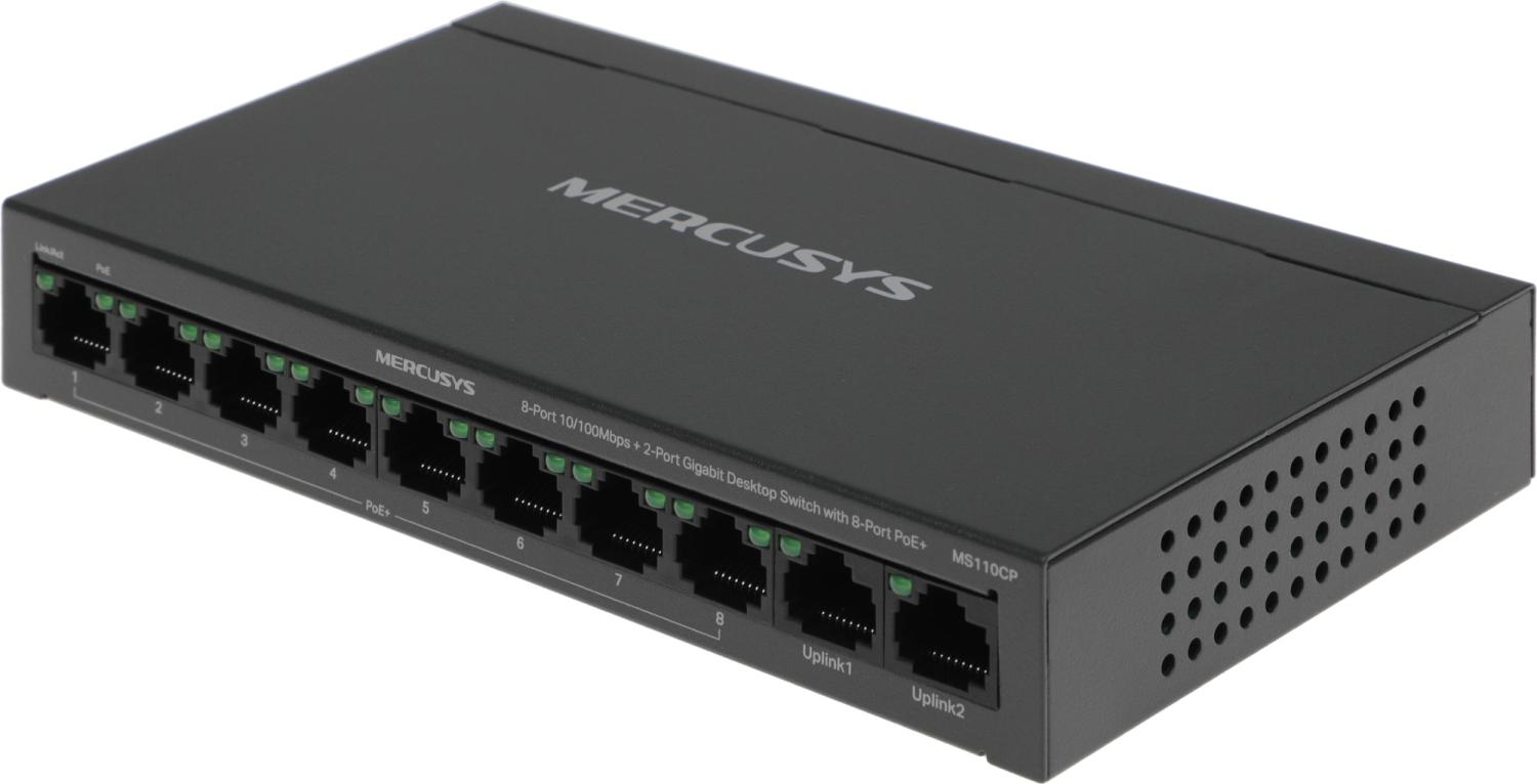 Коммутатор Mercusys MS110CP (L2) 8x100Мбит / с 2x1Гбит / с 8PoE+ 65W неуправляемый