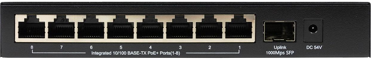 Коммутатор Unmanaged Switch 8x100Base-TX PoE, 1x1000Base-X SFP, PoE Budget 80W, metal case