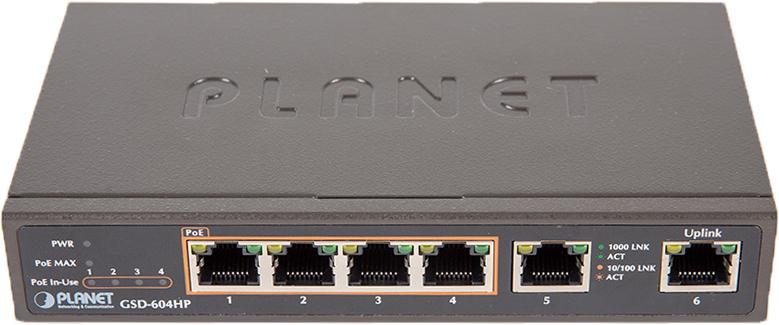 коммутатор / PLANET 4-Port 10 / 100 / 1000T 802.3at POE + 2-Port 10 / 100 / 1000T Desktop Switch (55W POE Budget, External Power Supply)