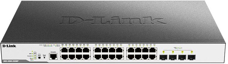 Коммутатор / DGS-3000-28XMP / B Managed L2 Switch 24x1000Base-T PoE, 4x10GBase-X SFP+, PoE Budget 370W, Surge 6KV, CLI, RJ45 Console, RPS, Dying Gasp