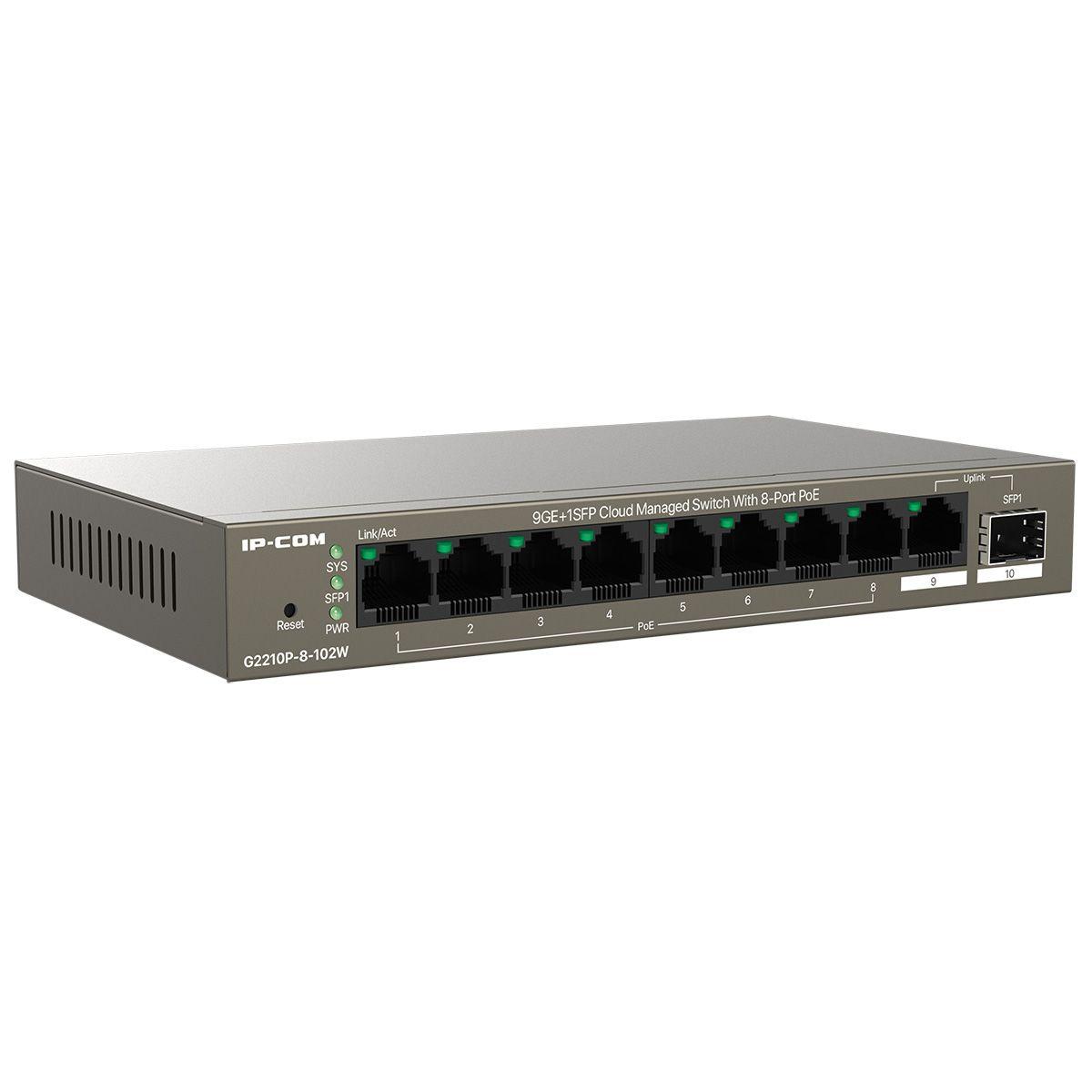 Коммутатор IP-COM G2210P-8-102W Облачный управляемый PoE коммутатор, 10 портов 9x1 Гбит / с, SFP 1x1 Гбит / с, PoE 8x30Вт, настольный, металлический