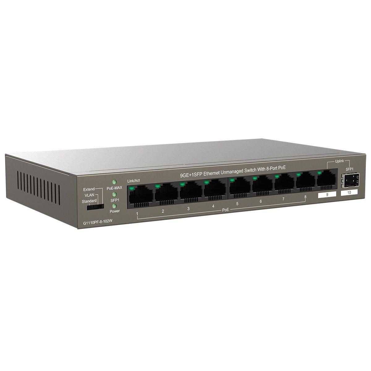 Коммутатор IP-COM G1110PF-8-102W Коммутатор неуправляемый PoE, 10 портов 10x100 Мбит / с, 2x1 Гбит / с, PoE 8х99 Вт, настольный