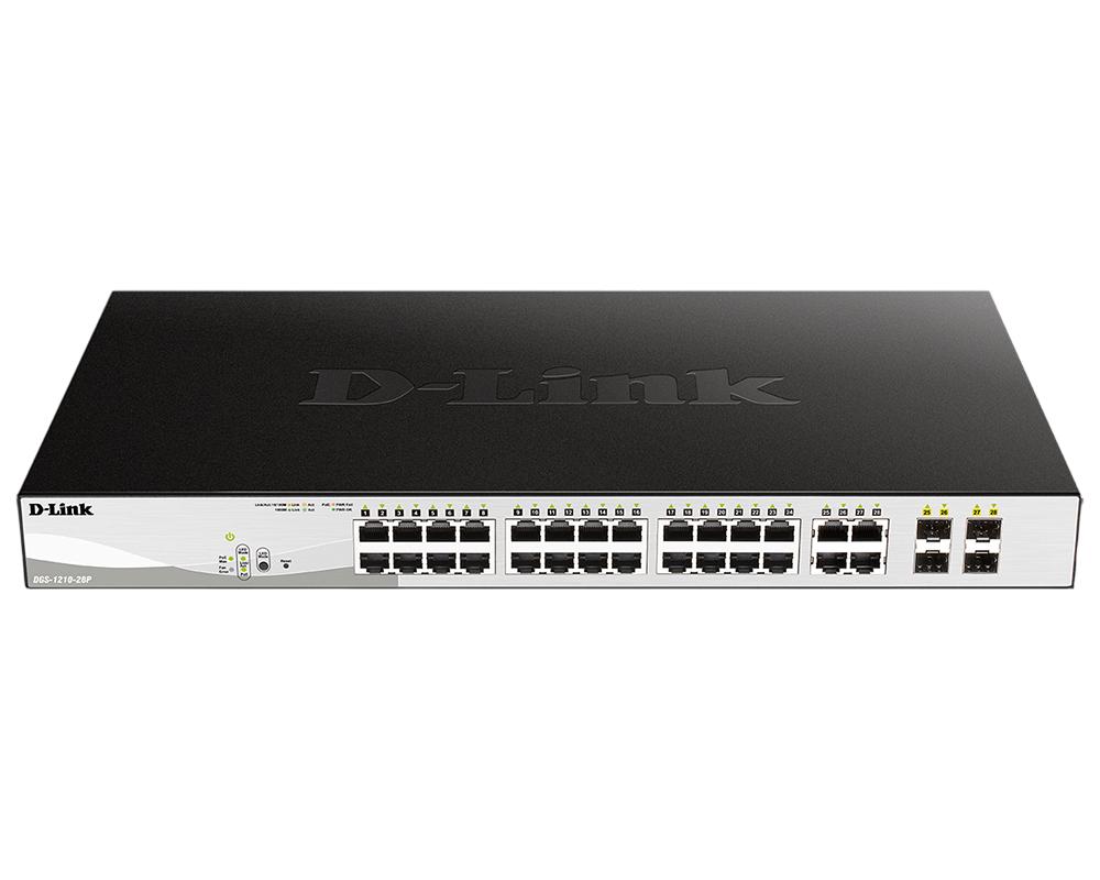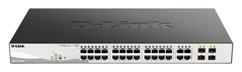 D-Link DGS-1210-28P / F5A Настраиваемый L2 коммутатор с 24 портами 10 / 100 / 1000Base-T и 4 комбо-портами 100 / 1000Base-T / SFP (24 порта PoE 802.3af / at PoE-бюджет 193 Вт)
