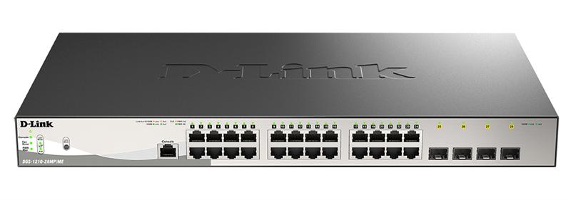 Коммутатор / DGS-1210-28MP / ME Managed L2 Metro Ethernet Switch 24x1000Base-T PoE, 4x1000Base-X SFP, PoE Budget 370W, Surge 6KV, CLI, RJ45 Console, Dying Gasp