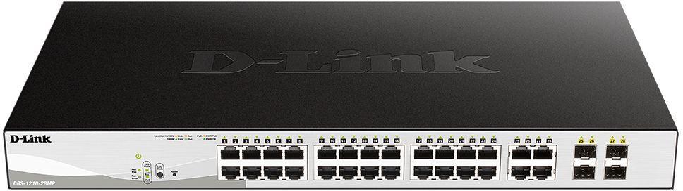 D-Link DGS-1210-28MP / FL1A PROJ Настраиваемый коммутатор WebSmart с 24 портами 10 / 100 / 1000Base-T и 4 комбо-портами 100 / 1000Base-T / SFP PoE 802.3af / 802.3at (30 Вт) PoE-бюджет 370 Вт