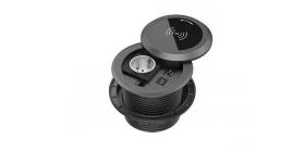Лючок врезной в стол Wize Pro [WRTS-RR-B] Состав: Розетка 220В -1, беспроводная зарядка моб.устройств, остальные модули - наборные