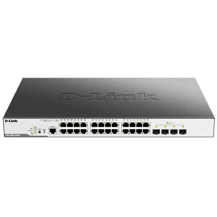 D-Link DGS-3000-28XMP / B1A Управляемый L2 коммутатор с 24 портами 10 / 100 / 1000Base-T и 4 портами 10GBase-X SFP+ (24 порта PoE 802.3af / at, PoE-бюджет 370 Вт)