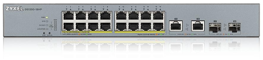 Коммутатор / ZYXEL GS1350-18HP L2 PoE + switch for IP cameras, 16xGE PoE +, 2xCombo (SFP / RJ-45), PoE budget 250 W, power transmission distance up to 250 m, auto-reloading of PoE ports, increased protection against overvoltage and electrostatic discharges