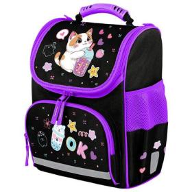Ранец ПИФАГОР BASIC, 1 отделение, 3 кармана, эргономичная спинка, "Dark kitten", 35х28х18 см, 273134