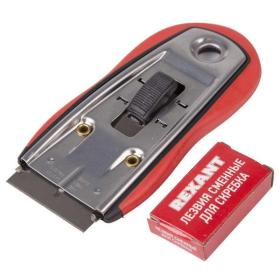 REXANT (12-4963) Скребок с выдвижным лезвием, обрезиненный корпус, 5 запасных лезвий в комплекте