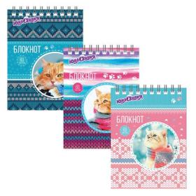 Блокнот МАЛЫЙ ФОРМАТ А6 110х145 мм, 40 л., гребень, лакированная обложка, клетка, HATBER, "Милые Котята", 004667, 40Б6B1гр