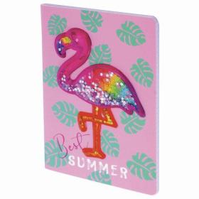 Блокнот с резинкой в клетку 96 л., МАЛЫЙ ФОРМАТ А6 (109х148 мм), твердая обложка, BRAUBERG, "Фламинго", 113741