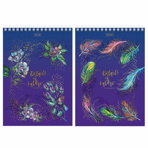 Блокнот А5 146х215 мм, 80 л., гребень, клетка, ламинация, 3D фольга, HATBER, "Тон природы", 80Б5лофВ1гр