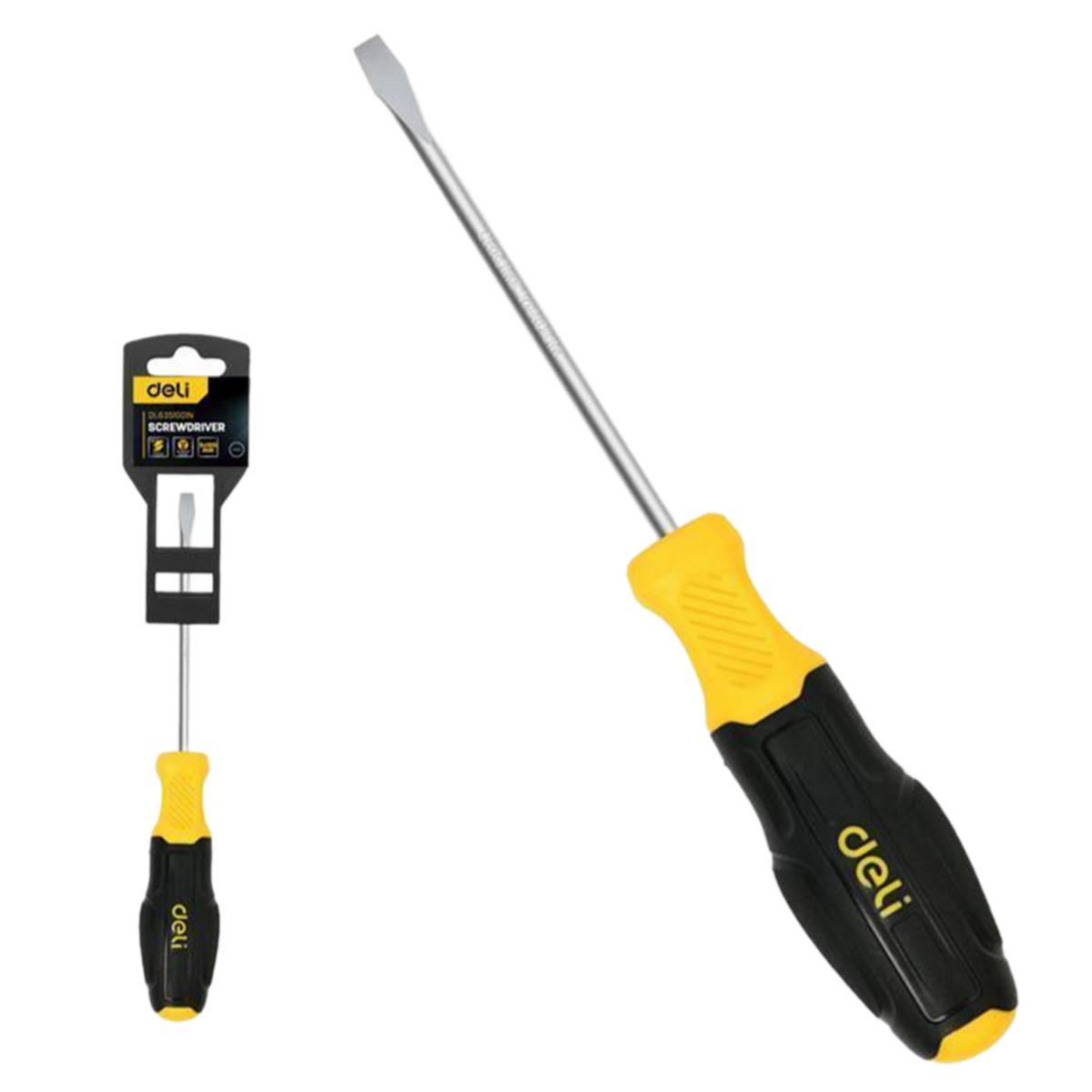Шлицевая отвертка Deli DL6331001N 3х100мм сталь Cr-V, двухкомпонентная прорезиненная рукоять