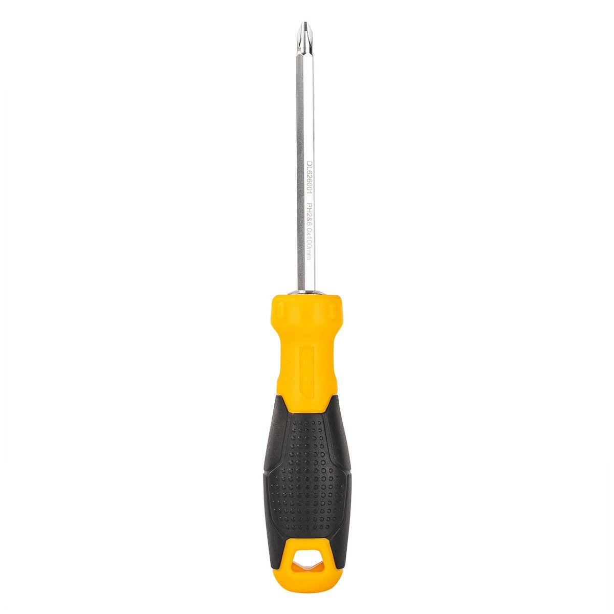 Двухсторонняя отвертка Deli DL626001 PH2+SL6x100мм, сталь Cr-V, общая длина 210 мм, длина хвостовика 100 мм, диаметр хвостовика 6,3мм Bad Pack