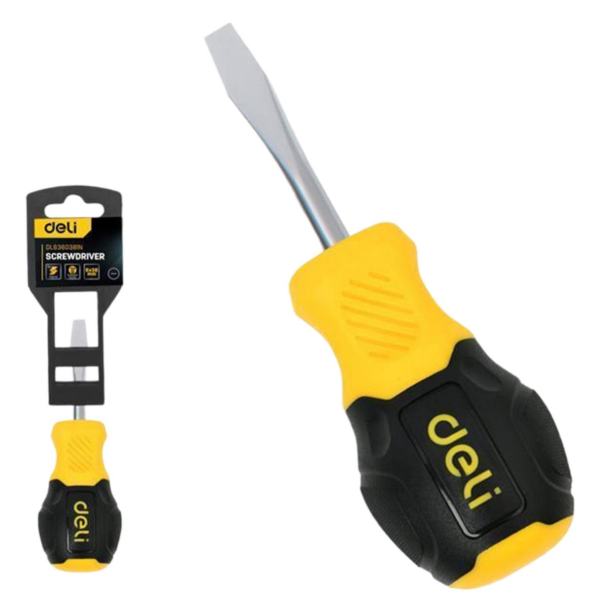 Шлицевая отвертка Deli DL6360381N 6х38мм сталь Cr-V, двухкомпонентная прорезиненная рукоять
