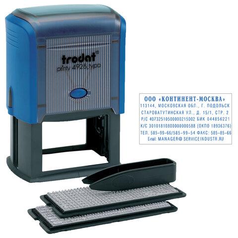 Штамп самонаборный 8-строчный, оттиск 60х40 мм, синий без рамки, TRODAT 4927 / DB, КАССЫ В КОМПЛЕКТЕ, 4957