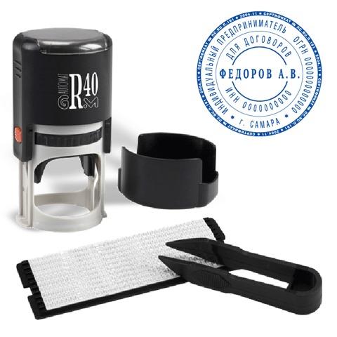 Печать самонаборная 1 круг, оттиск D=40 мм синий, GRM 46040, крышка, КАССА В КОМПЛЕКТЕ, 111000000
