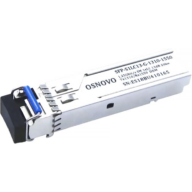 Трансивер / OSNOVO Оптический SFP Модуль GE, одно волокно SM, до 1,25 Гбит / c, SC, до 20км, Tx:1310 / Rx:1550, DDM