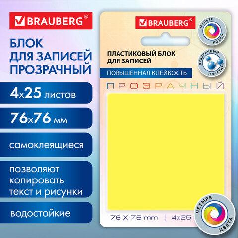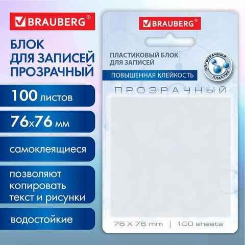 Блок самоклеящийся прозрачный (стикеры) BRAUBERG TRANSPARENT 76х76 мм, 100 листов, 115205