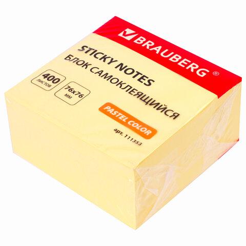 Блок самоклеящийся (стикеры) BRAUBERG 76х76 мм, 400 листов, желтый, 111353