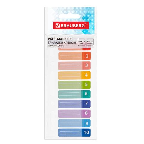 Закладки клейкие пастельные BRAUBERG PASTEL, пластиковые, 45х10 мм, 10 цветов х 20 листов, 115579