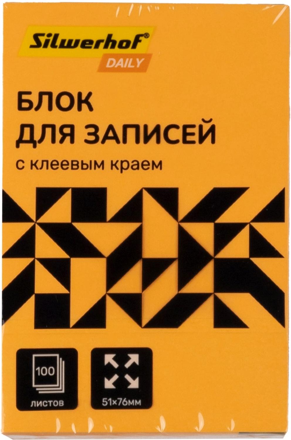 Блок самоклеящийся бумажный Silwerhof Daily 51x76мм 100лист. 75г / м2 неон оранжевый
