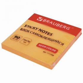 Блок самоклеящийся (стикеры) BRAUBERG НЕОНОВЫЙ 76х76 мм, 90 листов, оранжевый, 111349