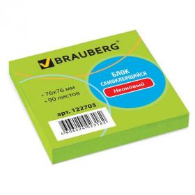 Блок самоклеящийся (стикеры), BRAUBERG, НЕОНОВЫЙ, 76х76 мм, 90 листов, зеленый, 122703