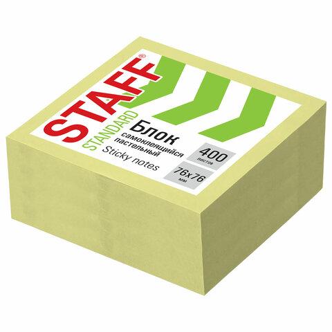 Блок самоклеящийся (стикеры) STAFF STANDARD, ПАСТЕЛЬНЫЙ 76х76 мм, желтый, 400 листов, 116586