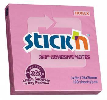 Блок самоклеящийся бумажный STICK`N 21554 76x76 100 л розовый клей по периметру