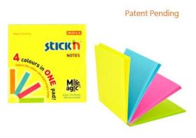 Блок самоклеящийся бумажный Stick`n Magic 21573 76x127мм 100лист. 70г / м2 неон 4цв.в упак.
