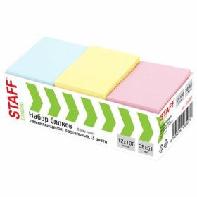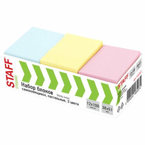 Блоки самоклеящиеся (стикеры) STAFF STANDARD, 38х51 мм, 3 цвета, 100 листов, НАБОР 12 штук, 116587