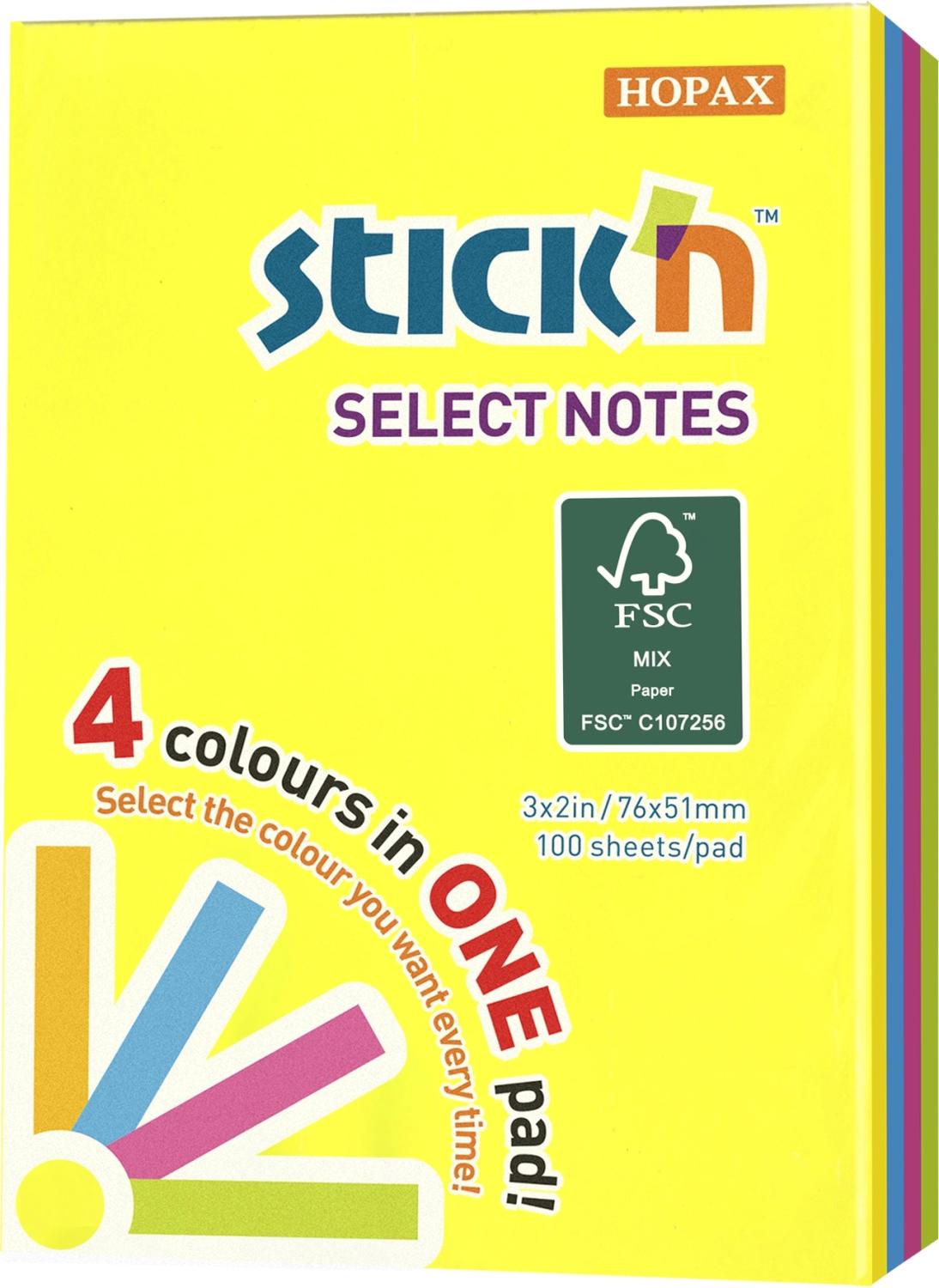 Блок самоклеящийся бумажный Stick`n Magic 21769 51x76мм 100лист. неон 4цв.в упак.