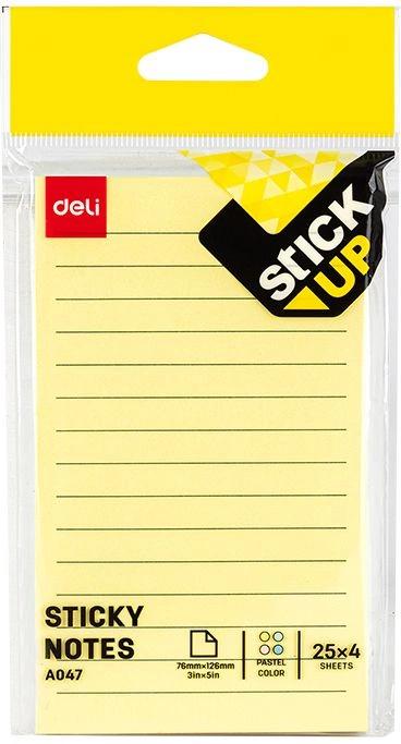 Блок самоклеящийся бумажный Deli Stick UP EA047 76x126мм 25лист. пастель ассорти 4цв.в упак. в линейку (упак.:4шт)
