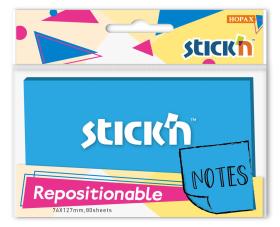 Блок самоклеящийся бумажный Stick`n 27081 76x126мм 80лист. 70г / м2 синий неон 1цв.в упак.