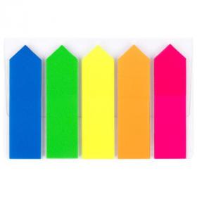 Закладки клейкие неоновые STAFF "СТРЕЛКИ", 45х12 мм, 100 штук (5 цветов х 20 листов), на пластиковом основании, 111355